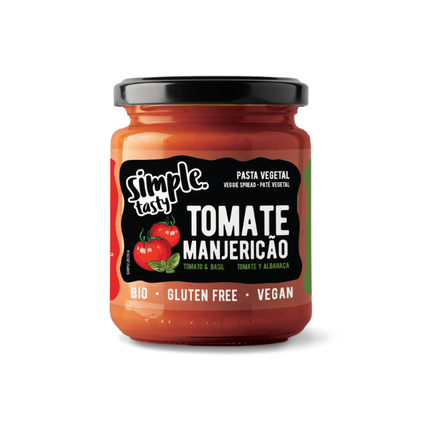 Pasta de Vegetais A Pasta Vegetal Tomate e Manjericão Simple® Tasty é uma deliciosa combinação de sabores que dá um toque especial a qualquer refeição. Com ingredientes naturais de origem biológica, é ideal para dips, para massas e bases das pizzas ou ainda para dar mais sabor aos pratos de carne.
