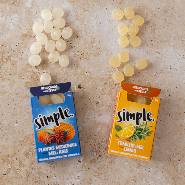 Rebuçados sem açúcar, adoçados com stevia e enriquecidos com vitamina C.Os Rebuçados Simple são uma deliciosa mistura de extratos de frutos e plantas com propriedades eficazes que auxiliam na sensação de garganta irritada. Um momento doce e acolhedor, sem adição de açúcar, numa maravilhosa conjugação de sabores.